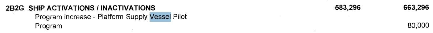 Support and Special: Solid last minute investment in auxiliary vessels from the most recent congressional budget documents