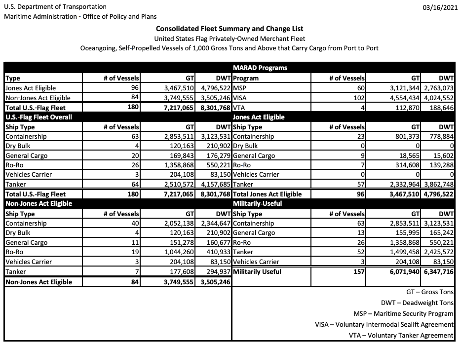 US-Flagged Fleet is slightly broader than the Jones Act Fleet