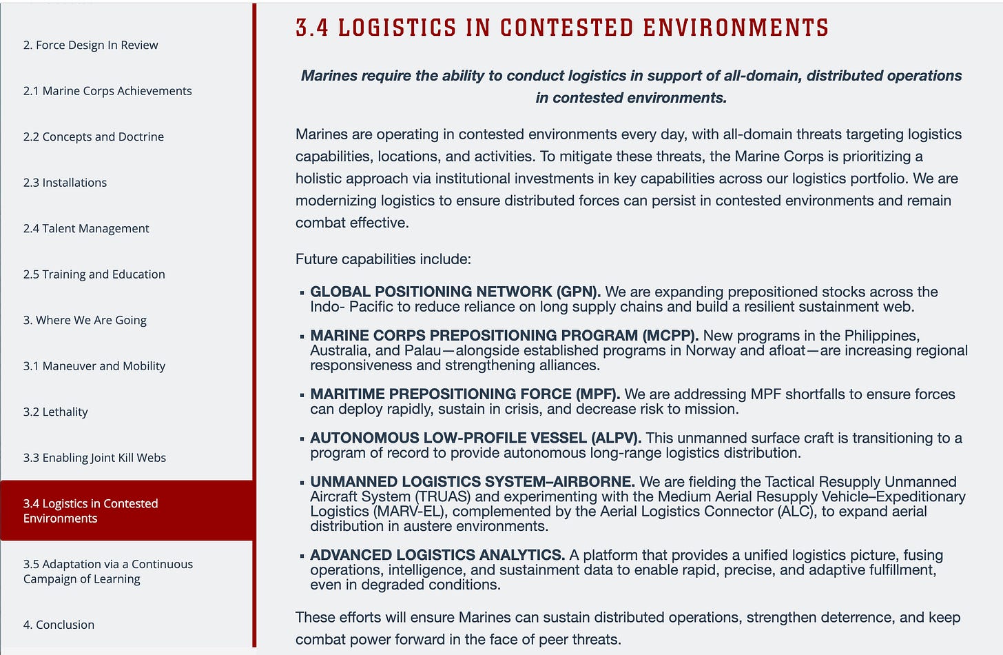Although Big Navy hasn’t spent much effort on logistics, the Marines seem much more stressed out by the challenge ahead. They’ve even started standing up Marine Littoral Regiments built to maneuver in the archipelagic battlefields of the first island chain. The Marines emphasize littoral maneuver and “Logistics in a Contested Environment” - both enabled by key platforms such as LSM and ALPV - loud and clear in their Force Design 2030.