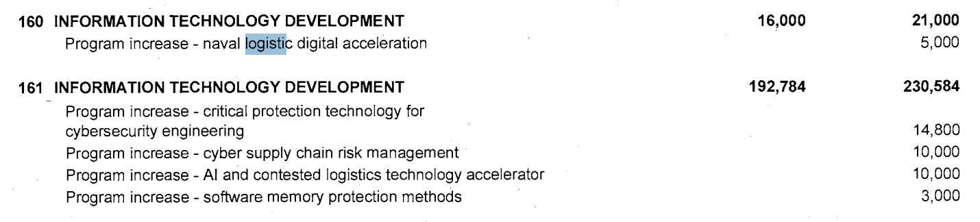 Here are a few more lines showing IT and software investments for naval logistics.