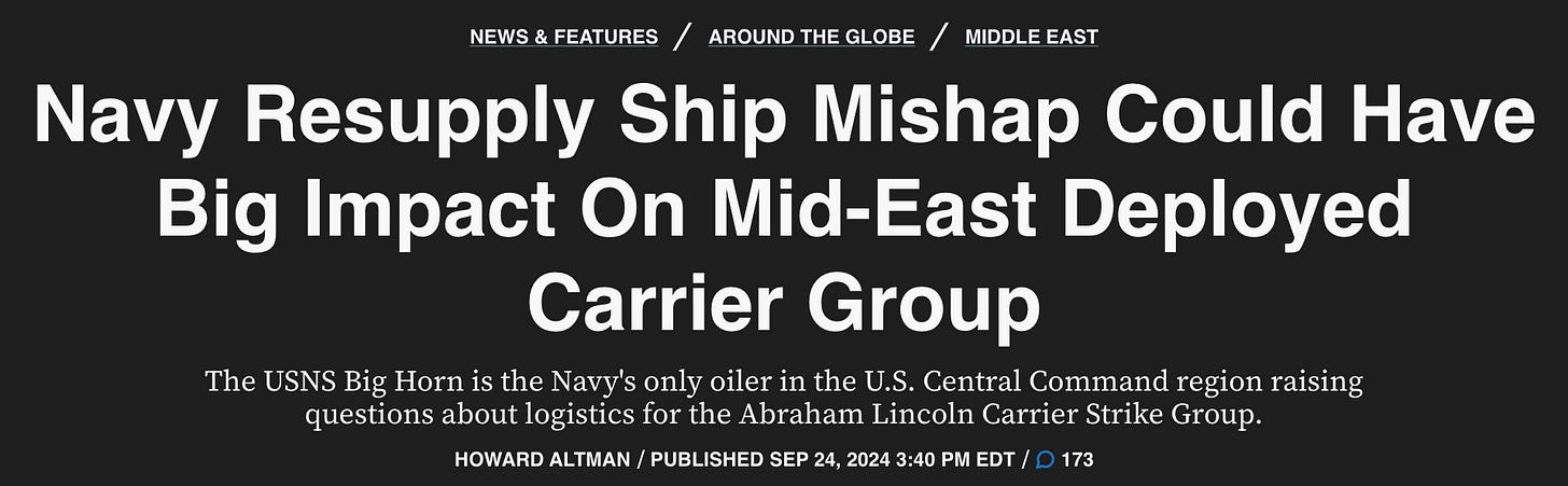 As the headlines above show, logistics are challenging at sea, in the air, and on the ground. This piece will focus on the maritime dimension: what can we move across the water, under fire. Later this year, I’ll publish a similar piece on air mobility. Last, and the hardest to research in the public domain, I’ll look at basing and infrastructure in INDOPACOM. Preparation in these three domains - sea, air, ground - will determine whether we are ready to fight the next war, or maybe whether we have to.